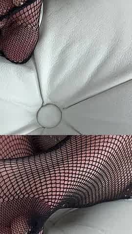 Nina Rivera plays solo with her fishnet-clad labia using a vibrator