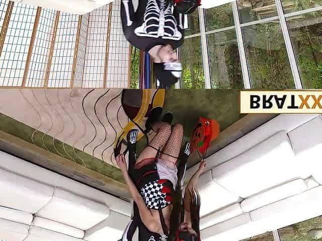 Small Vixen In Fishnets Rides Large Prize on Halloween