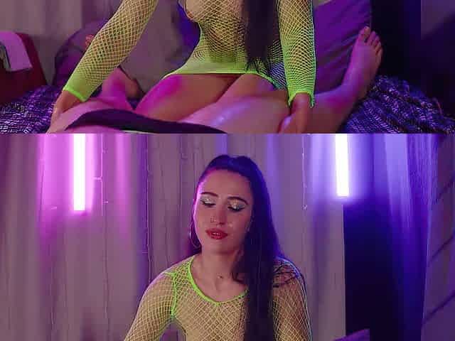 Nina Rivera plays solo with her fishnet-clad labia using a vibrator