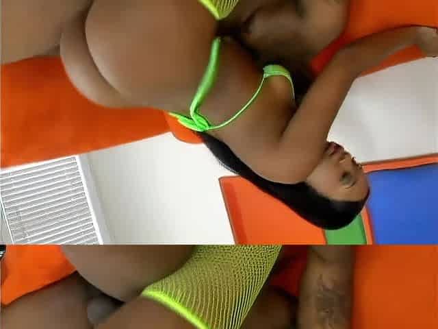 Big ass ebony wearing fishnet lingerie gets her butt hole fucked in various poses