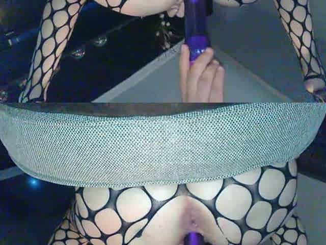 Milf in bodysuit fishnet rough fucket with dildo and cock in both holes
