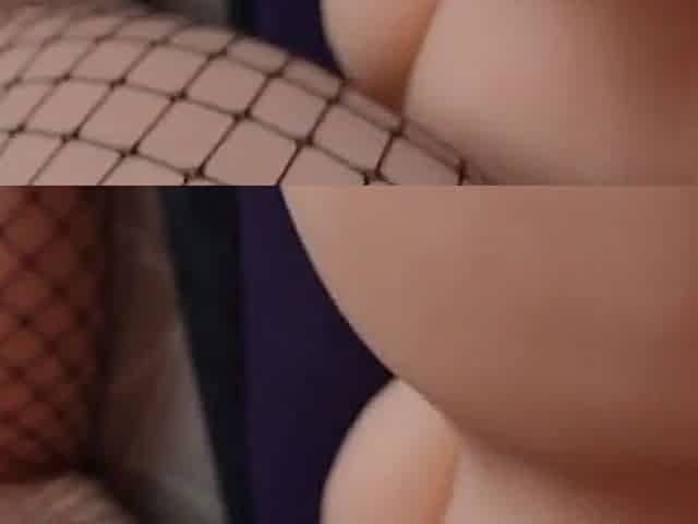 Angel in black fishnet opens her shaved pussy for a huge boner