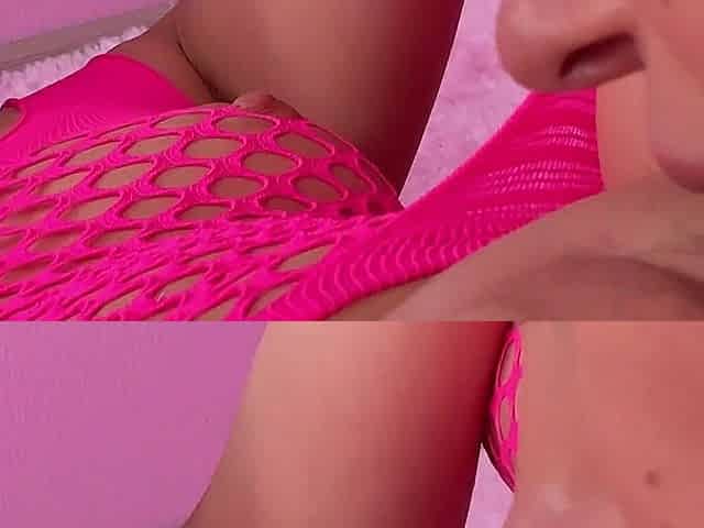 A petite slut in fishnet body stocking