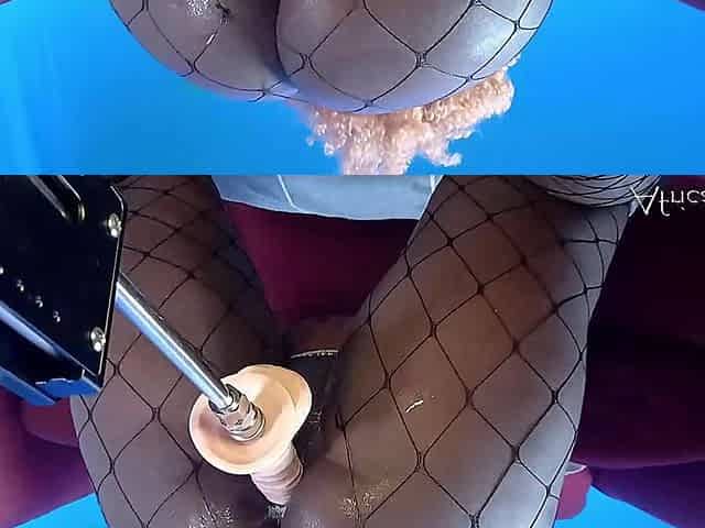 Mzansi College Girl Wearing Fishnet Stockings Takes Sex Machine Dildo up Her Pussy