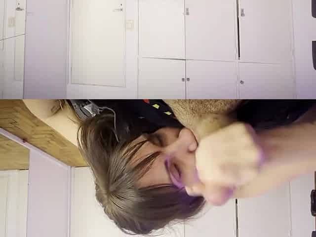 Widening her legs in the locker room and masturbating like a real bitch