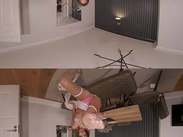 Slut in Pink Fishnets Tries Dvp with a Dildo