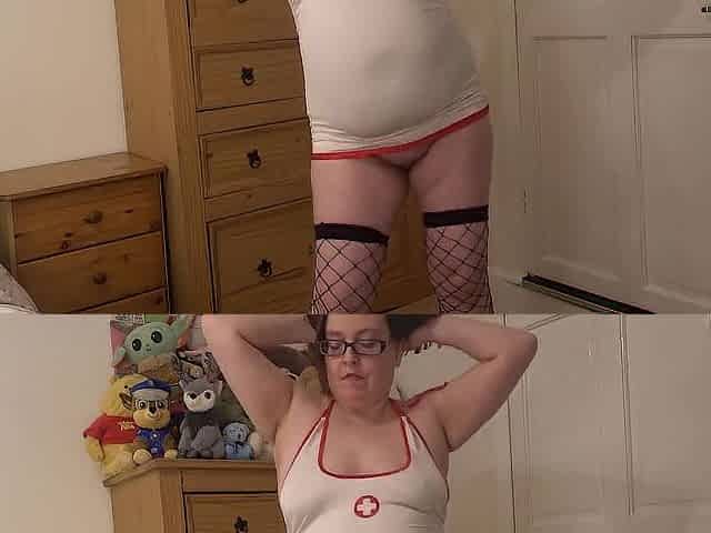 Hot nurse striptease in skin taut uniform fishnet nylons