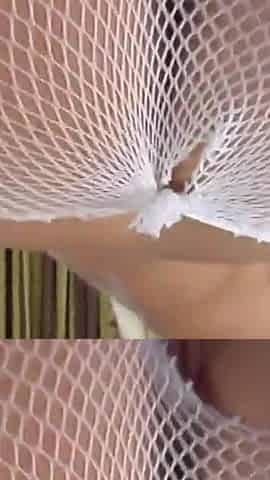the girl in the net played with her hole on camera until a strong orgasm