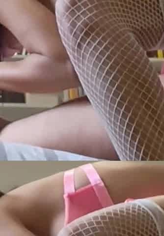 Masturbating with White Fishnet Stockings Between the Thighs of My Charming Black Slut