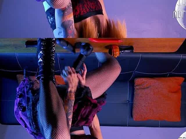 Hawt tattooed golden-haired Helly_Rite enjoys large sex-toy in all holes
