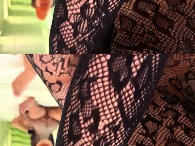 Wearing pink fishnet catsuit and pink platform ankle boots. Coarse POV oral