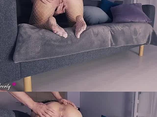 Merry brunette hair mother I'd like to fuck in fishnet nylons gets an anal creampie