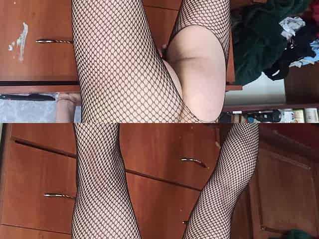 Hot Colombian in Fishnet Stockings Enjoys Her Toy Alone