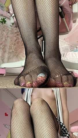 MILF in fishnet enjoys foot fetish