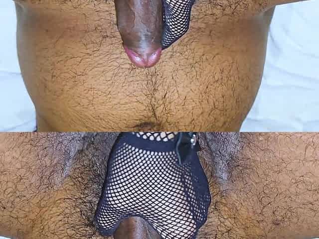 In fishnet nylons and pink Platform boots I suck a large penis until I cums on my wife's throat