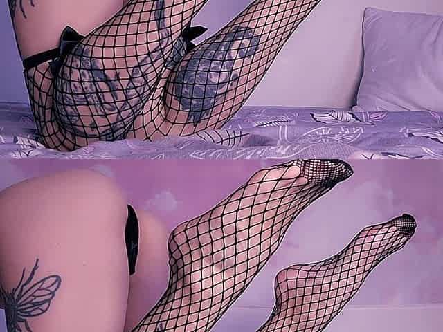 ChickPass - Tattooed Ashenn Fire rips her fishnets to do a dildo