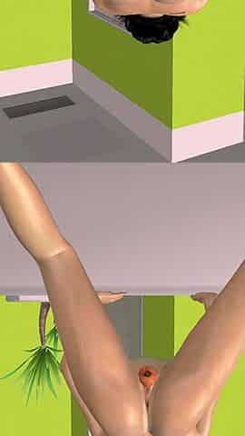 3D Animated Sex Videos Gorgeous Asian Babe Masturbates with a Carrot at the Gym