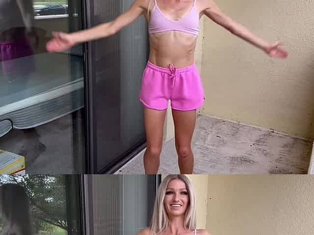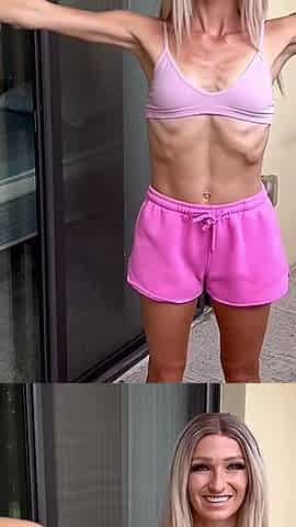 Skinny Fit Blonde Girl Stretches and Workout on Balcony