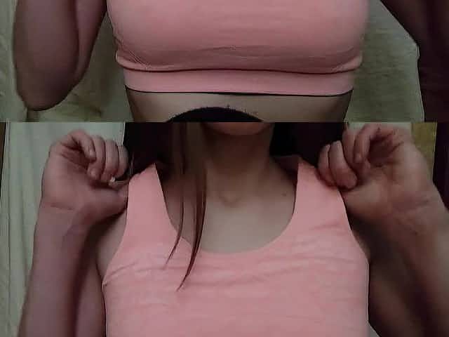 Lewd in the gym ASMR boob play in sports brassiere