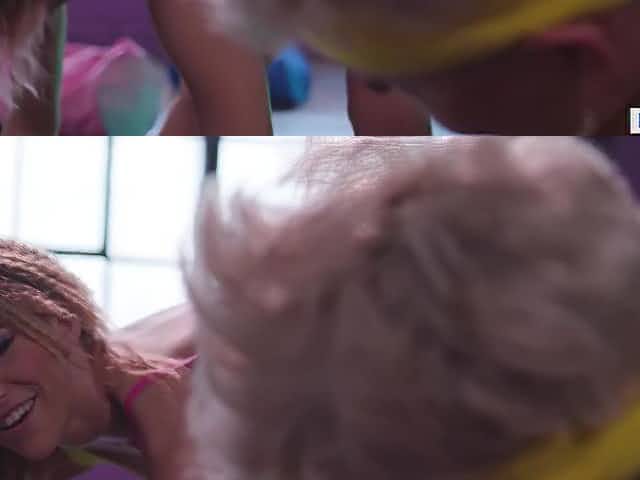 Fitness Rooms Interracial threesome in yoga class with young women in lycra