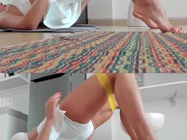 Girls Only Apartment in Japan, a Room Where Natural Tits Girl in Gym Clothes Mini T-shirt and Thong Leotard Do Tease Fitness
