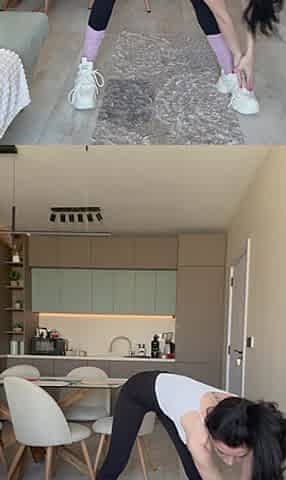 Sexy Wife Workout at Home Naked. Amateur Wife Masturbates with Her Fingers in Her Pussy