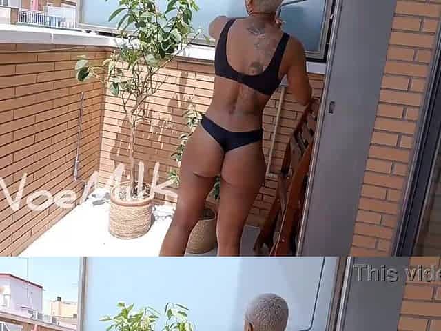 Noe Milk is sunbathing on her terrace, I put oil on her and end up banging her mercilessly.
