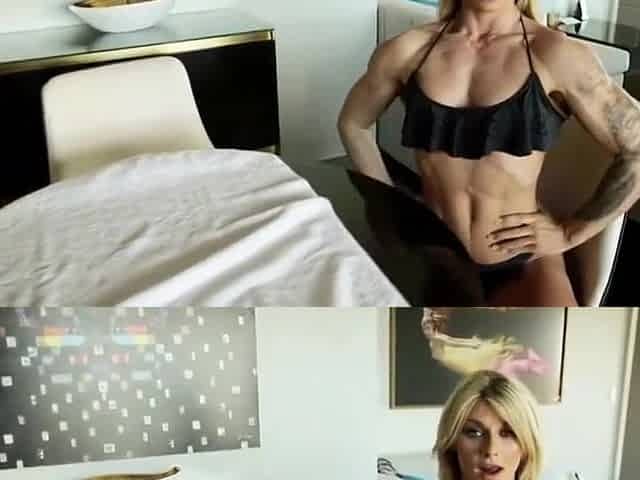 Fit blonde cougar's incredible strength in a challenging sports workout