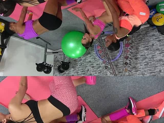 Fitness chicks get undressed during their tough abs workout