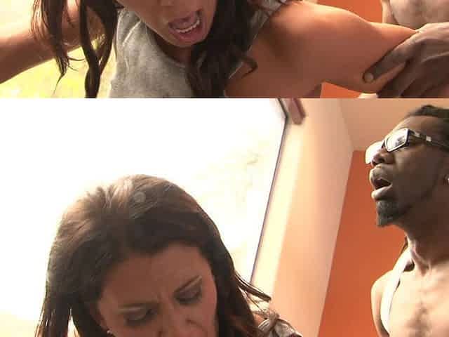 Hot milf fitness instructor with huge tits takes two black cocks