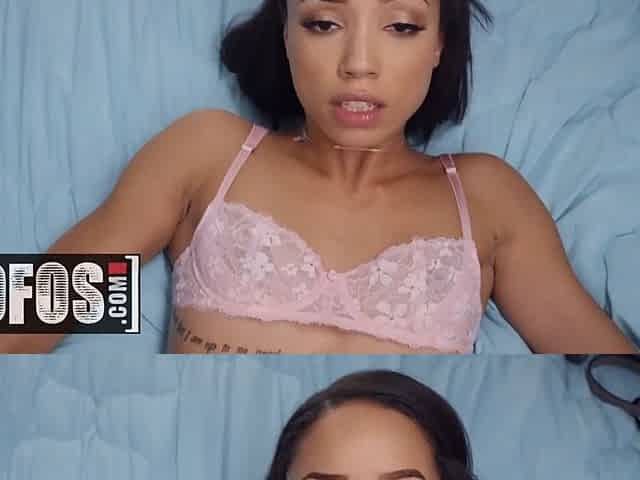 Trying on Bras in the Fitting Room - Tiny Black Beauty Next Door - Natural Melons