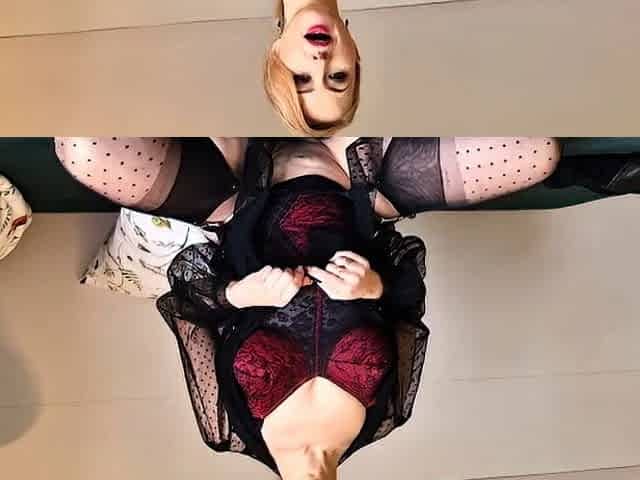 Sexy blonde Jayde bends over to show her is not wearing panties