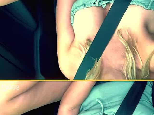 Slutty amateur flashing her big boobs in the backseat