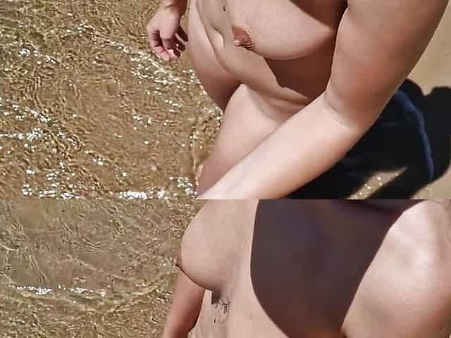 "Dickflash on a nudist beach I approach a stranger and she is masturbating, touching my dick"