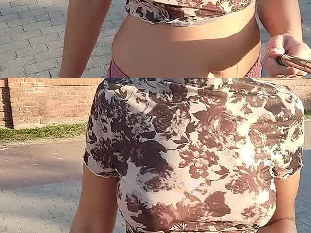 Natural tits and a nice ass on display in public