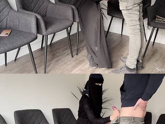 Naughty public exhibition in a hospital waiting room! Stunning Muslim stranger catches me stroking off