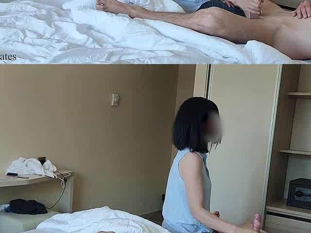 Shameless public display! I expose myself to a hotel maid and she willingly strokes me off.