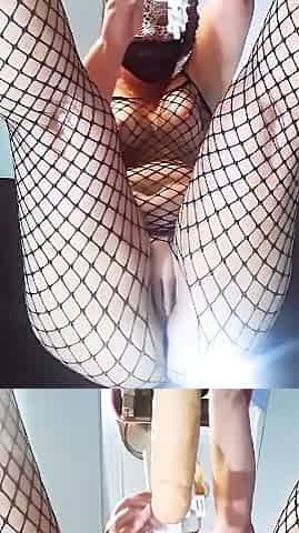 The light-skinned girl works her pussy with her fingers before stretching it with a big vibrator.