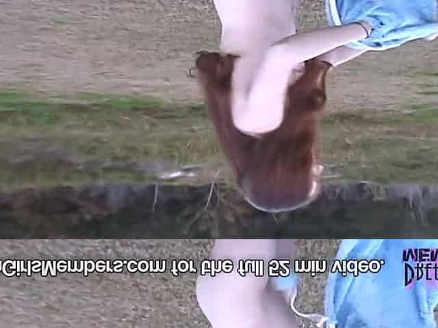"Cute brunette teen Katie Oliwer flashing outdoors"