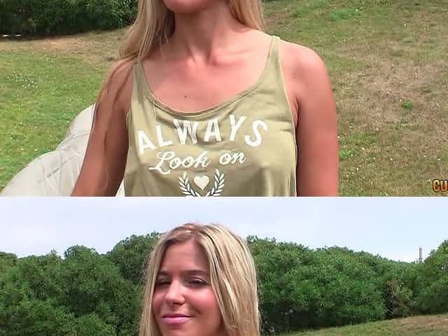 Blonde Milf slut flashing big naturals outdoors on public - euro fetish