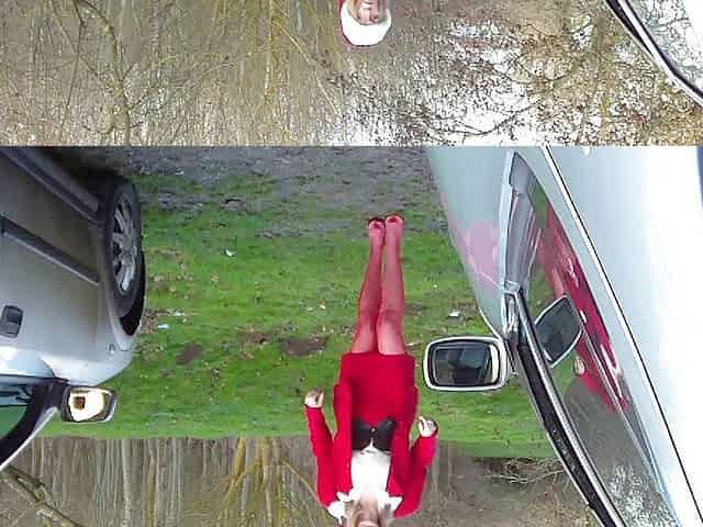 Julie Cunningham outside strip & piss shorter pantyhose & heels