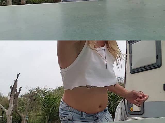 Golden-Haired does Slide n Slip In Nature's Garb in her backyard & masturbates