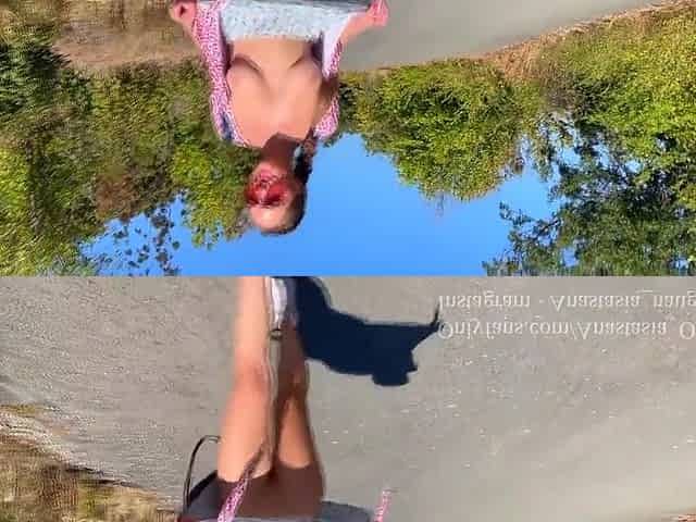 Walking Toples To The Beach. Flashing Pussy On The Road. Public
