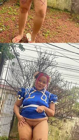 BBW Chun-li Cosplay Exhibitionism in the Garden