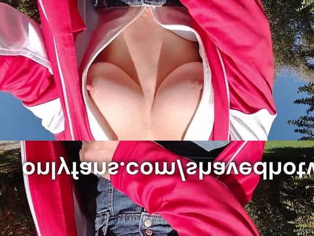 Amateur milf flashing her big boobs in a public place