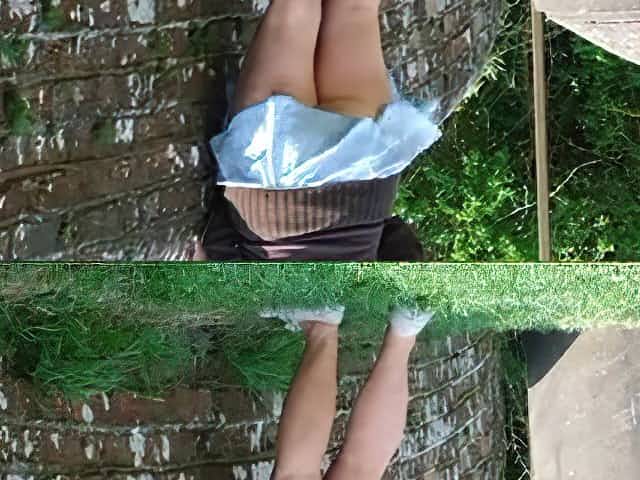 wife upskirt at garden centre-denim mini and pink panties
