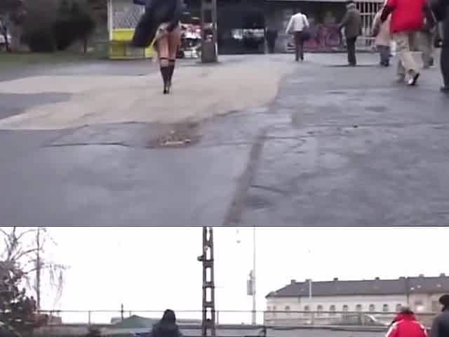 flasher-bitch pissing on the streets 1