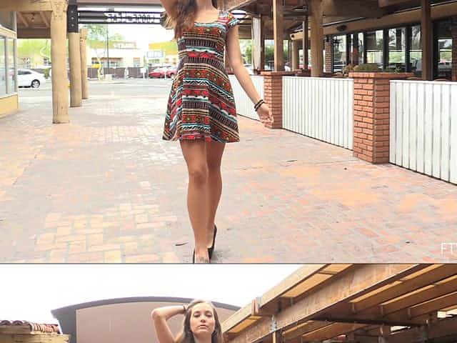 Emily Flashes Her Smooth, Shaved Pussy Out in Public