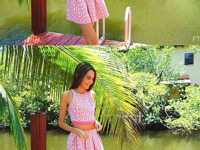 Sexy porn hottie displays seductive body in a hot erotic outdoor action