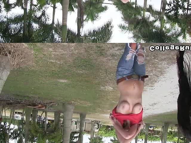 Haley shows her tits and shaved pussy in outdoor solo clip